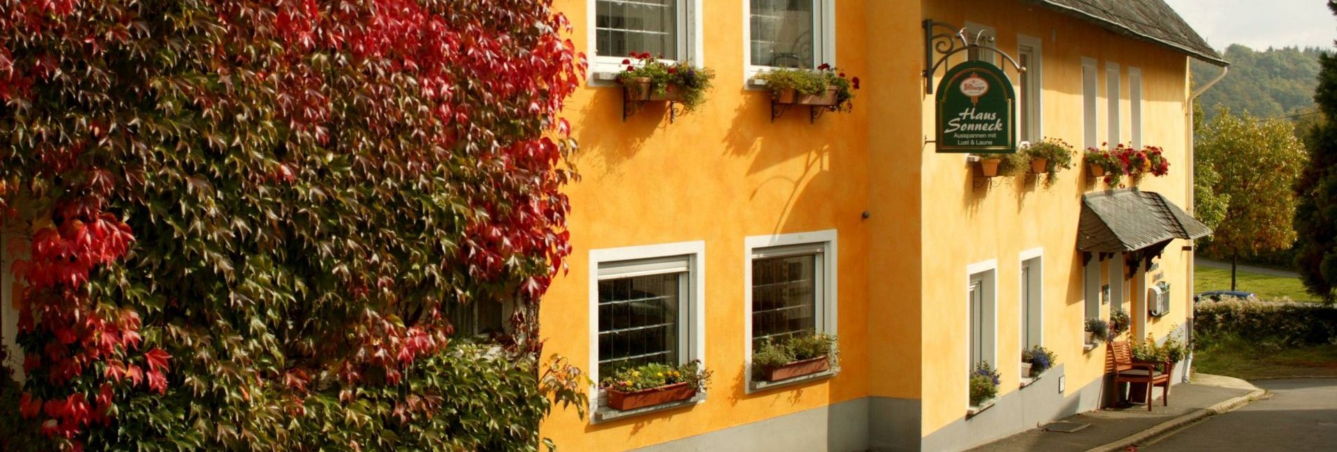 Nur fünf Minuten zu Fuß… egal, in welche Himmelsrichtung Sie sich wenden: Von unserem Landhaus Sonneck sind Sie innerhalb kürzester Zeit entweder im Herzen des urigen Kurstädtchens Manderscheid, im Kurpark, auf einer malerischen Turnierwiese zwischen zwei wuchtigen mittelalterlichen Burgen oder auf dem Premiumwanderweg Eifelsteig, der zu den schönsten Strecken Europas zählt. Die berühmten Maare liegen gleich zweifach vor der Haustür: spannend und anschaulich erklärt im modernen Museum nebenan oder „live“ wenige Kilometer entfernt. Sie haben die Wahl zwischen Natur pur oder Kultur – ganz nach Lust und Laune.